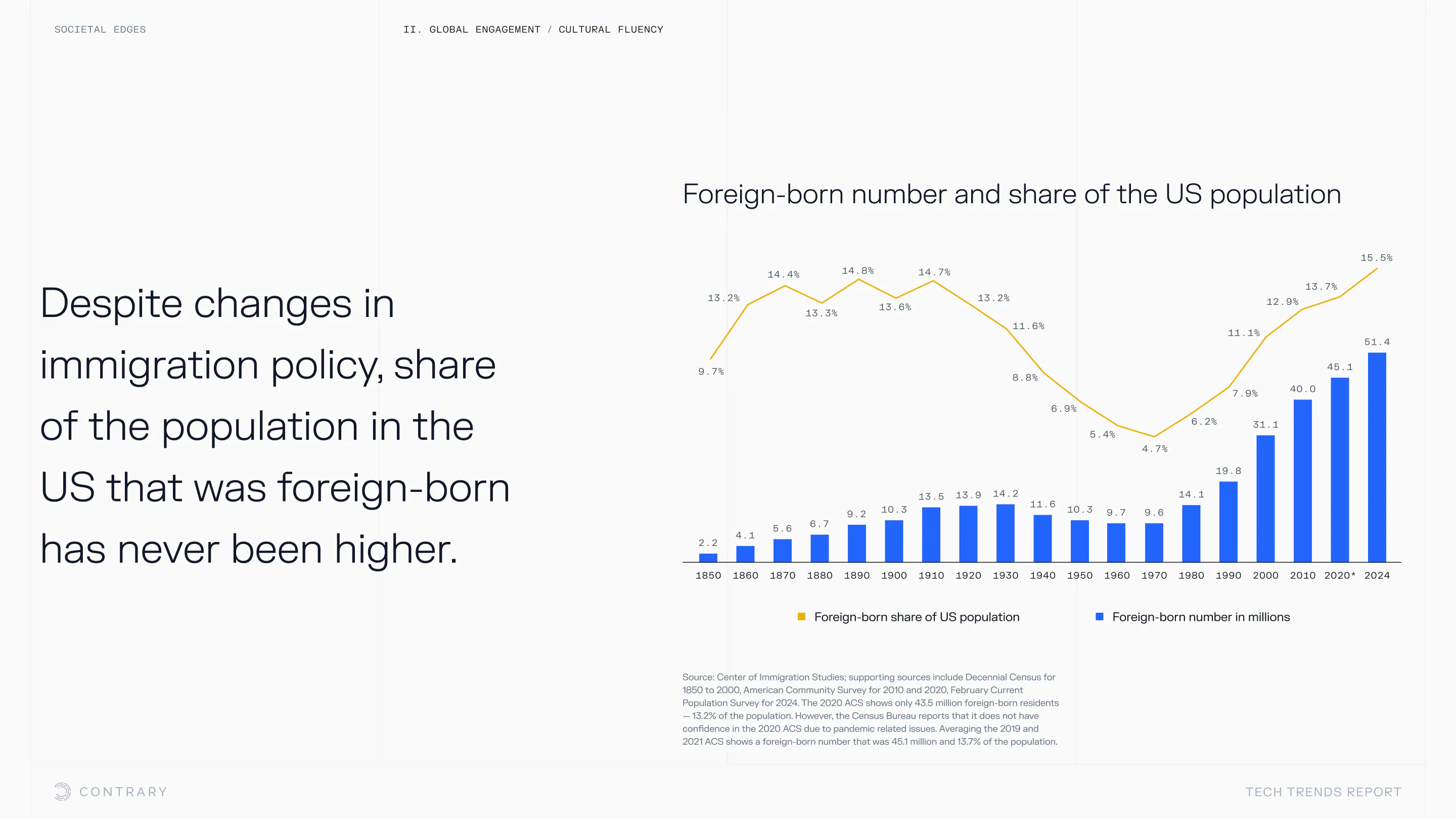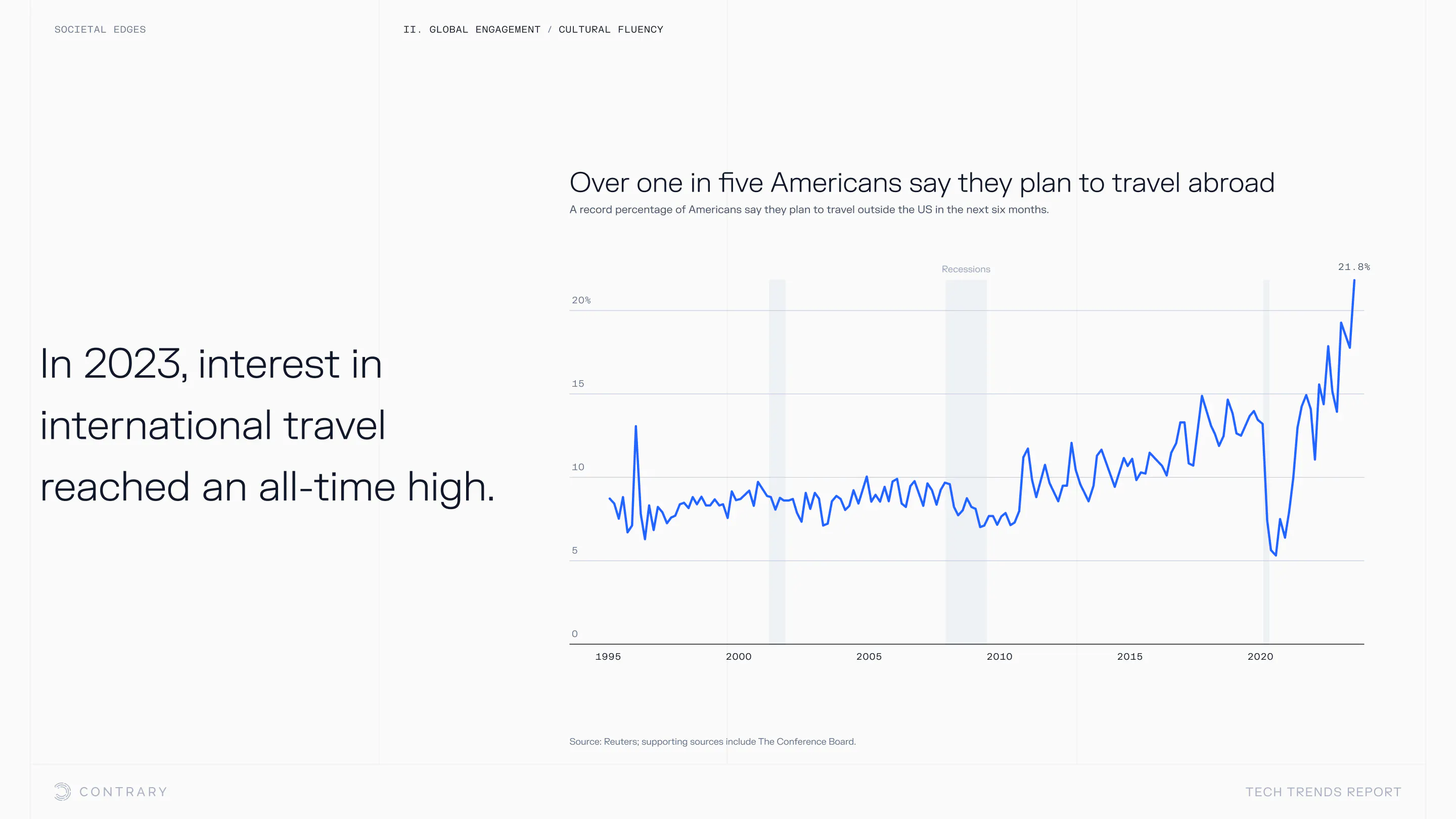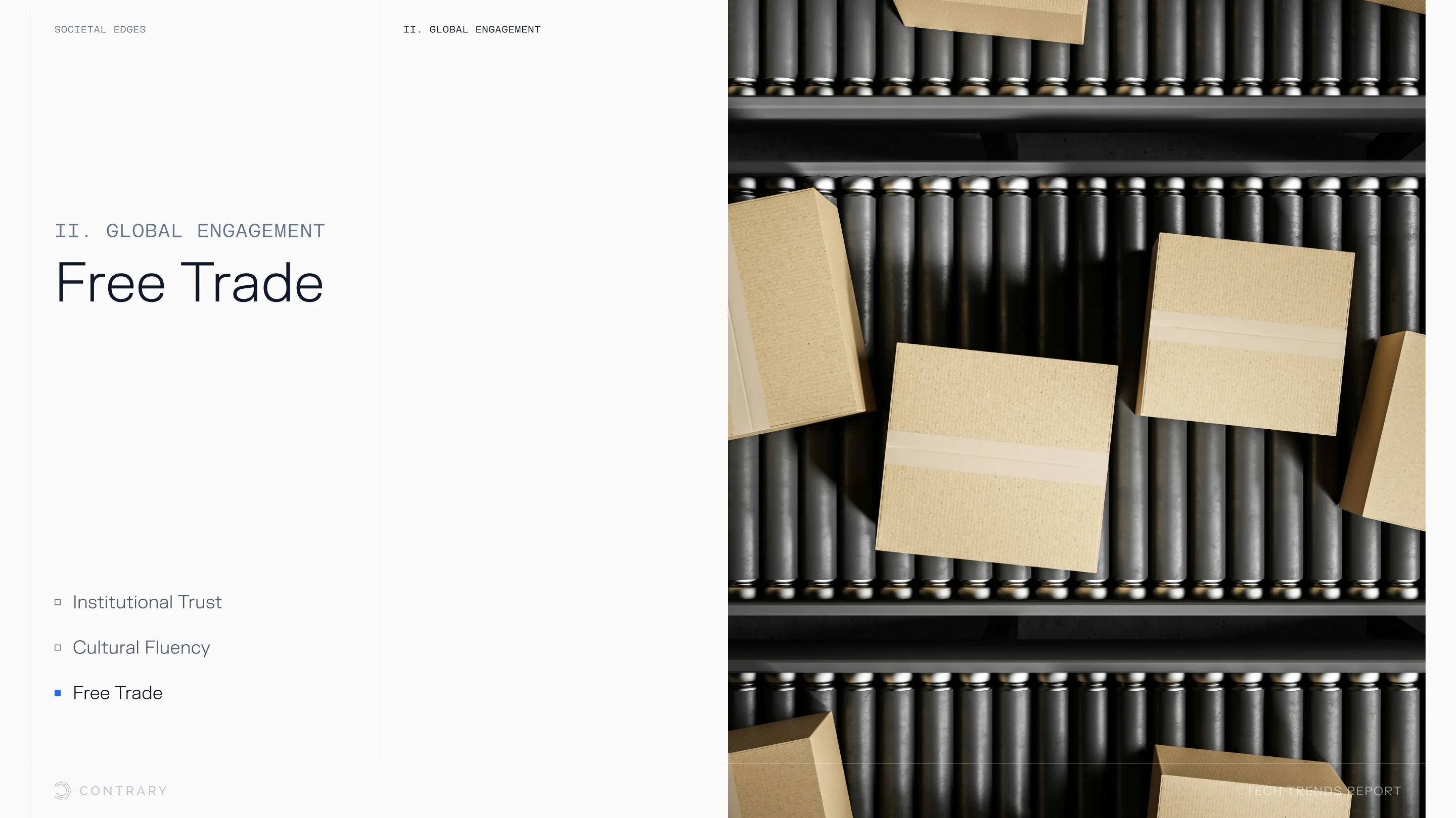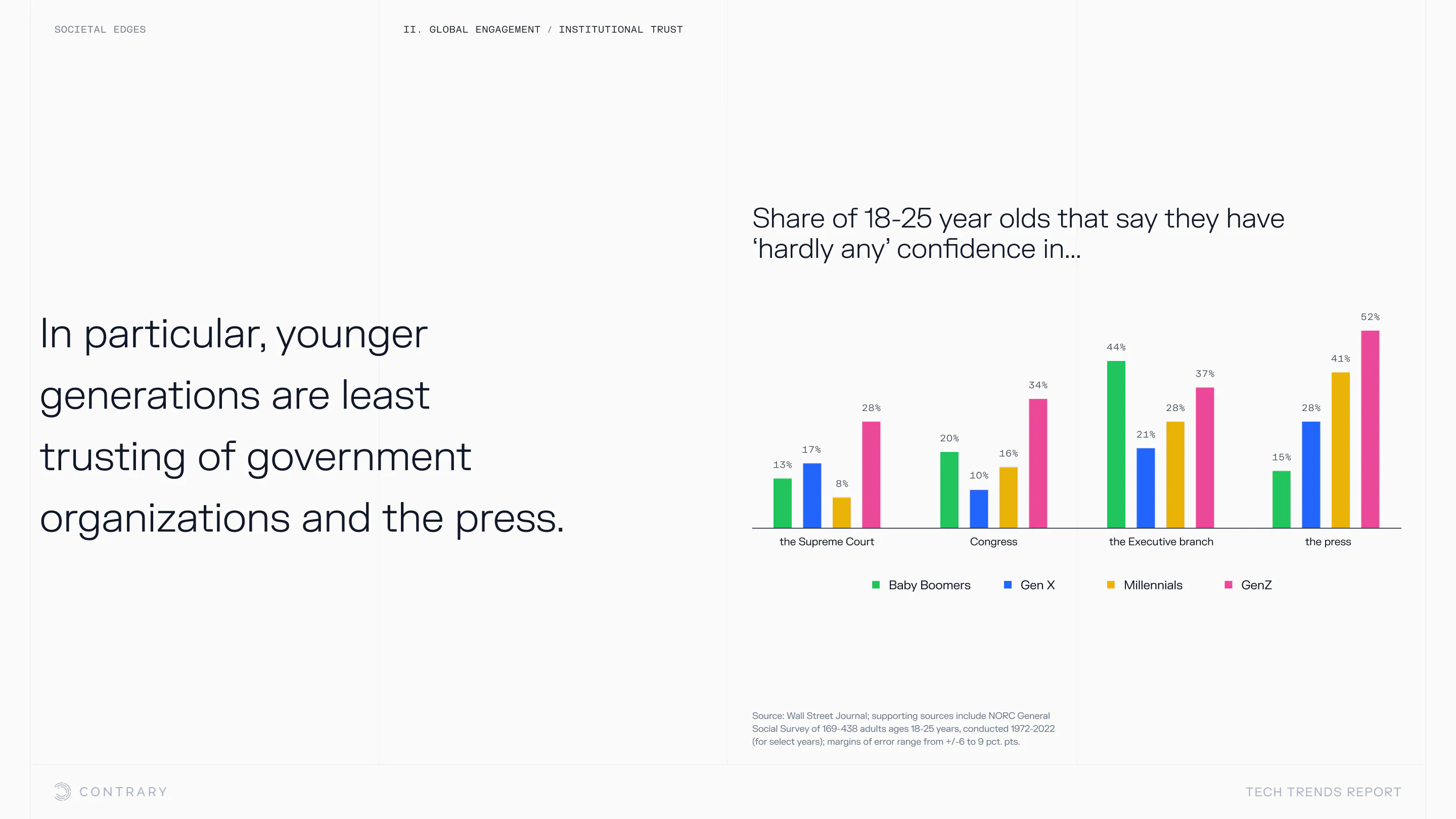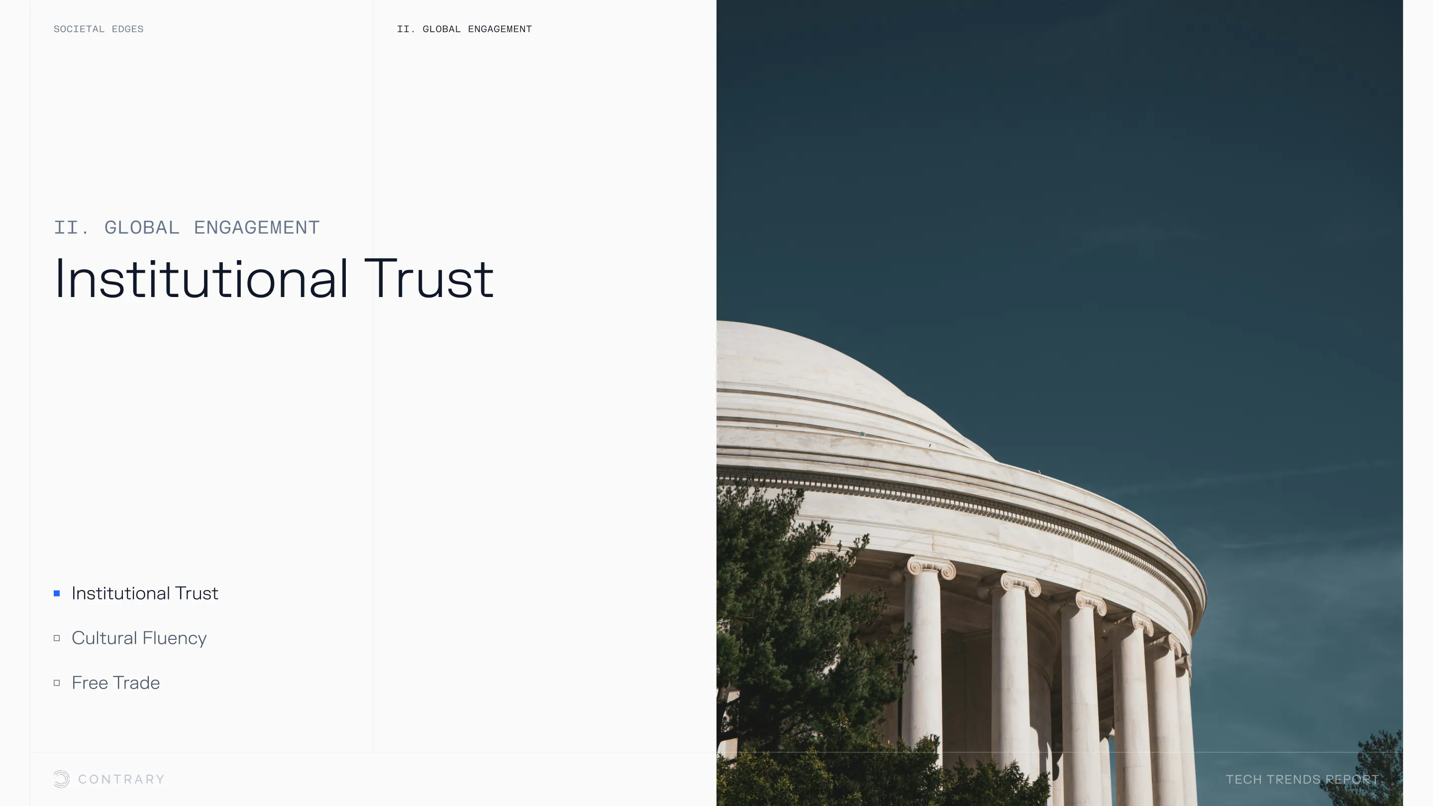 Institutional trust is falling and globalization is facing a global backlash, with global openness to trade declining for the first time since WWII. The cutting edge is leaning into localization and microcultures.
