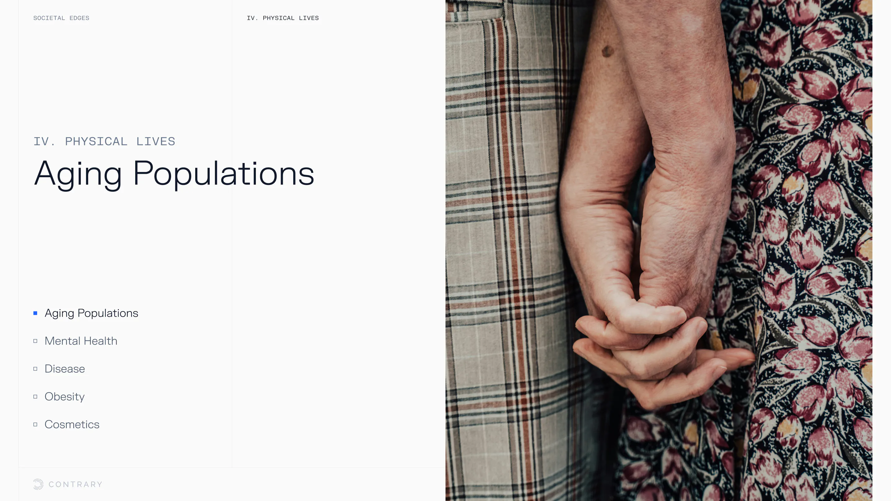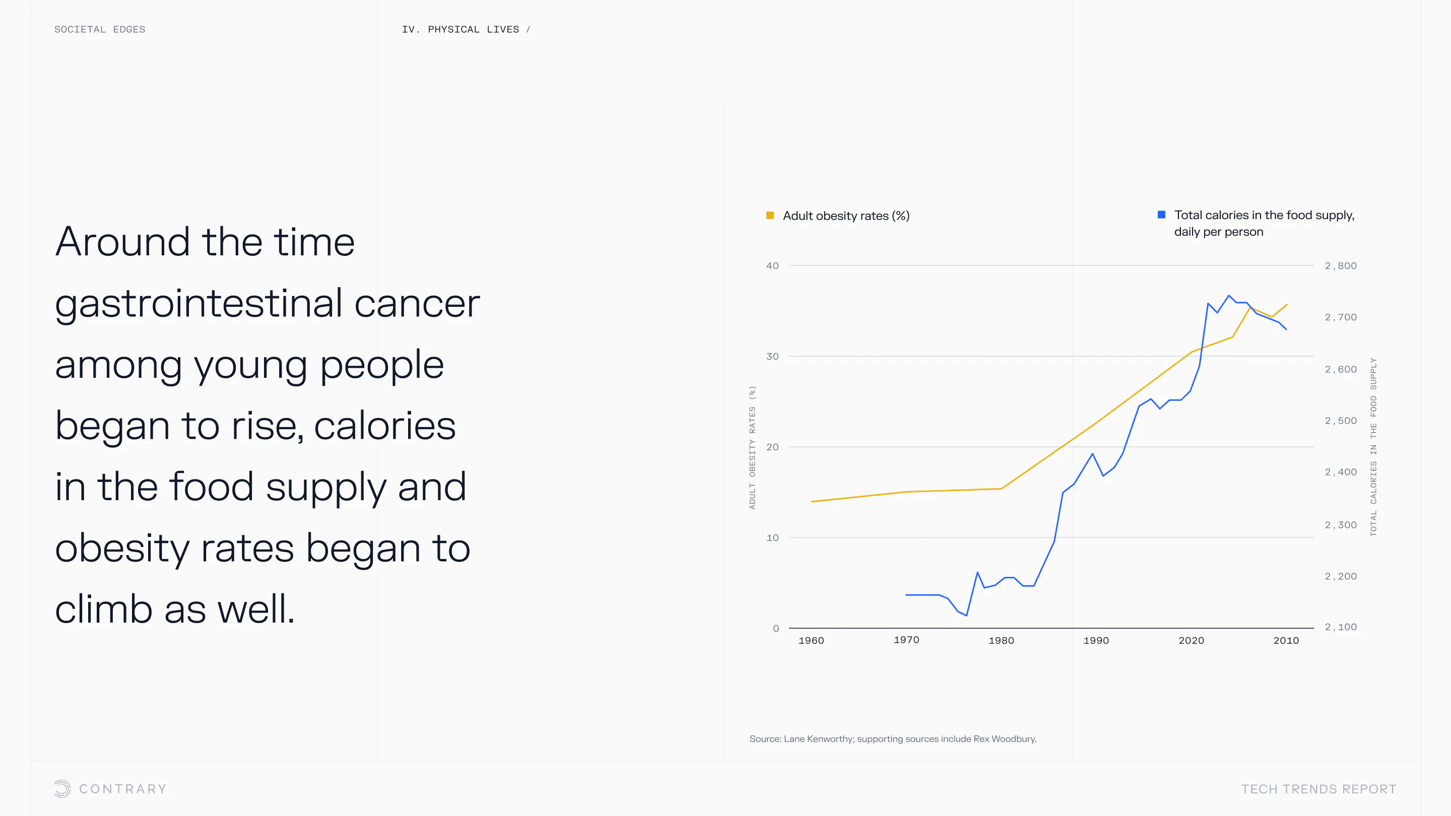 An aging population is bringing up a range of increased concerns, from mental health to disease control. Obesity and gastrointestinal cancers are plaguing younger generations. The cutting edge is tackling a system that has unhealthiness woven into it.